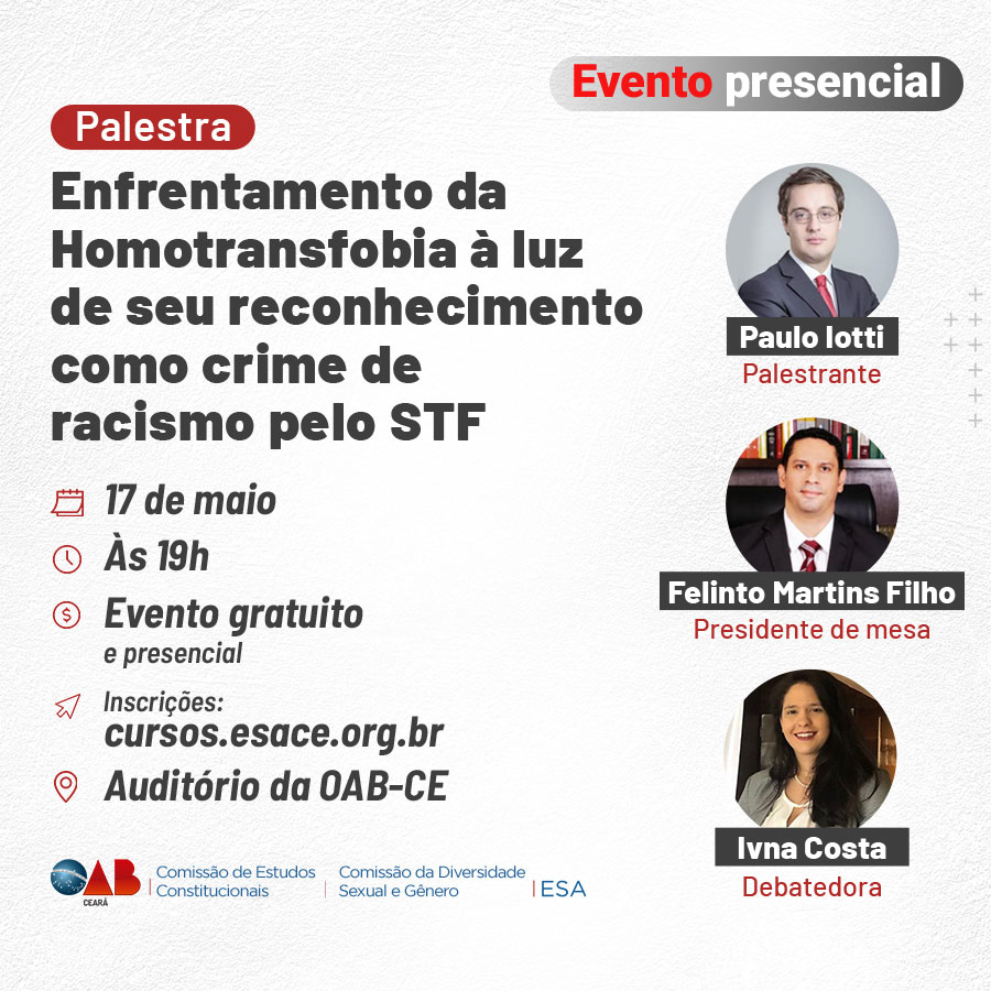 Palestra: Enfrentamento da Homotransfobia a luz de seu reconhecimento como crime de racismo pelo STF