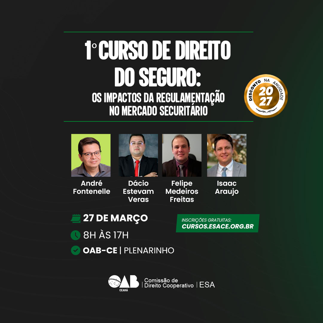 Realização: Comissão de Direito Cooperativo e Subcomissão de Direito Securitário e Mutualista da OAB-CE Gestão 2025-2027 | ESA-CE