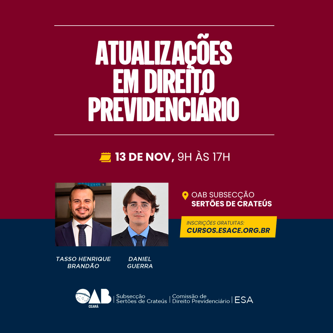 Realização: OAB-CE | Comissão de Direito Previdenciário | Subsecção Sertões de Crateús| ESA-CE