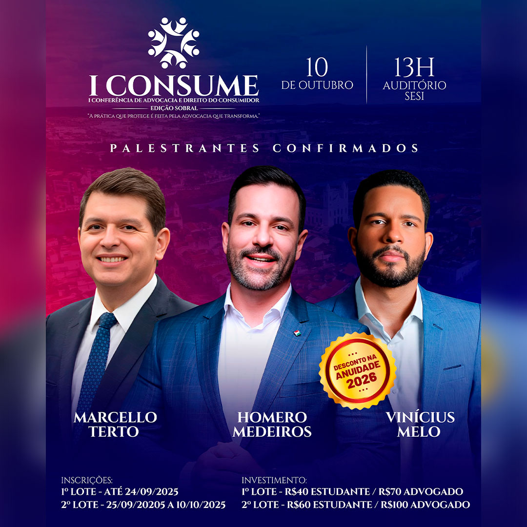 I CONSUME – CONFERÊNCIA DE ADVOCACIA E DIREITO DO CONSUMIDOR – EDIÇÃO SOBRAL | PATROCINADORES