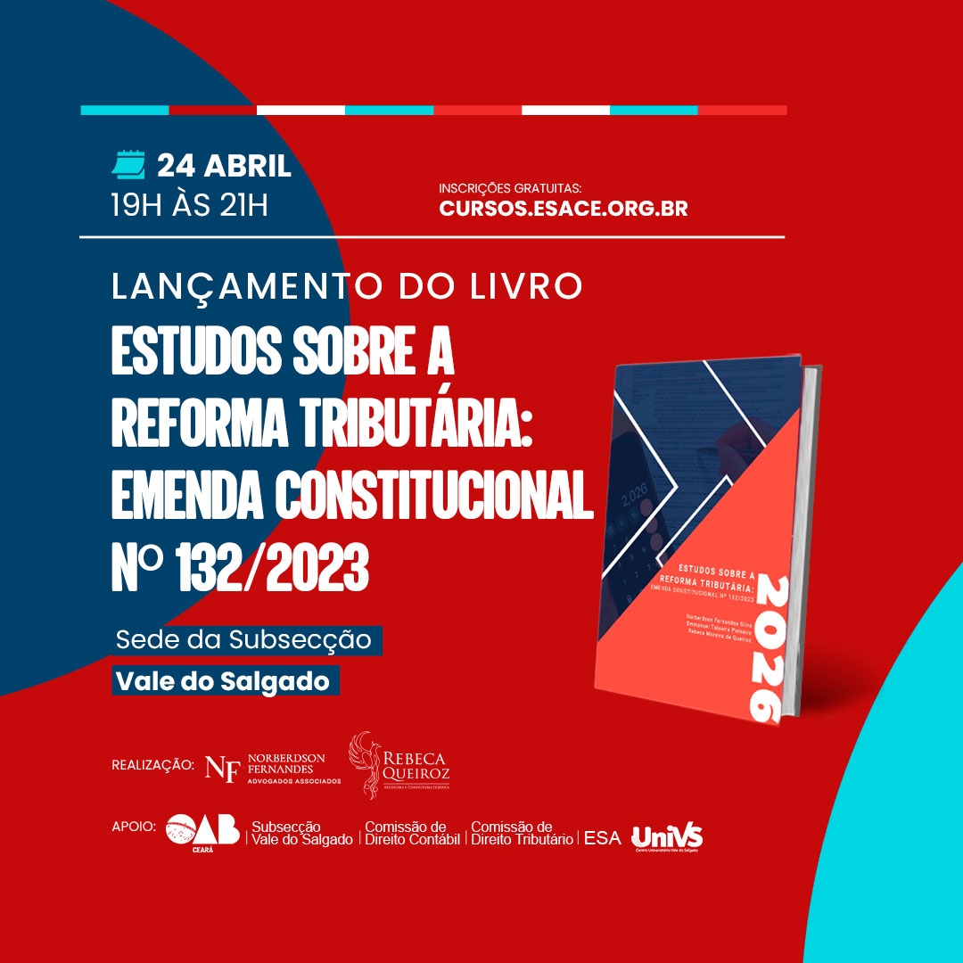 Apoio: OAB-CE, ESA-CE, Comissão de Direito Contábil da OAB-CE, Comissão de Direito Tributário da OAB-CE e UniVS.