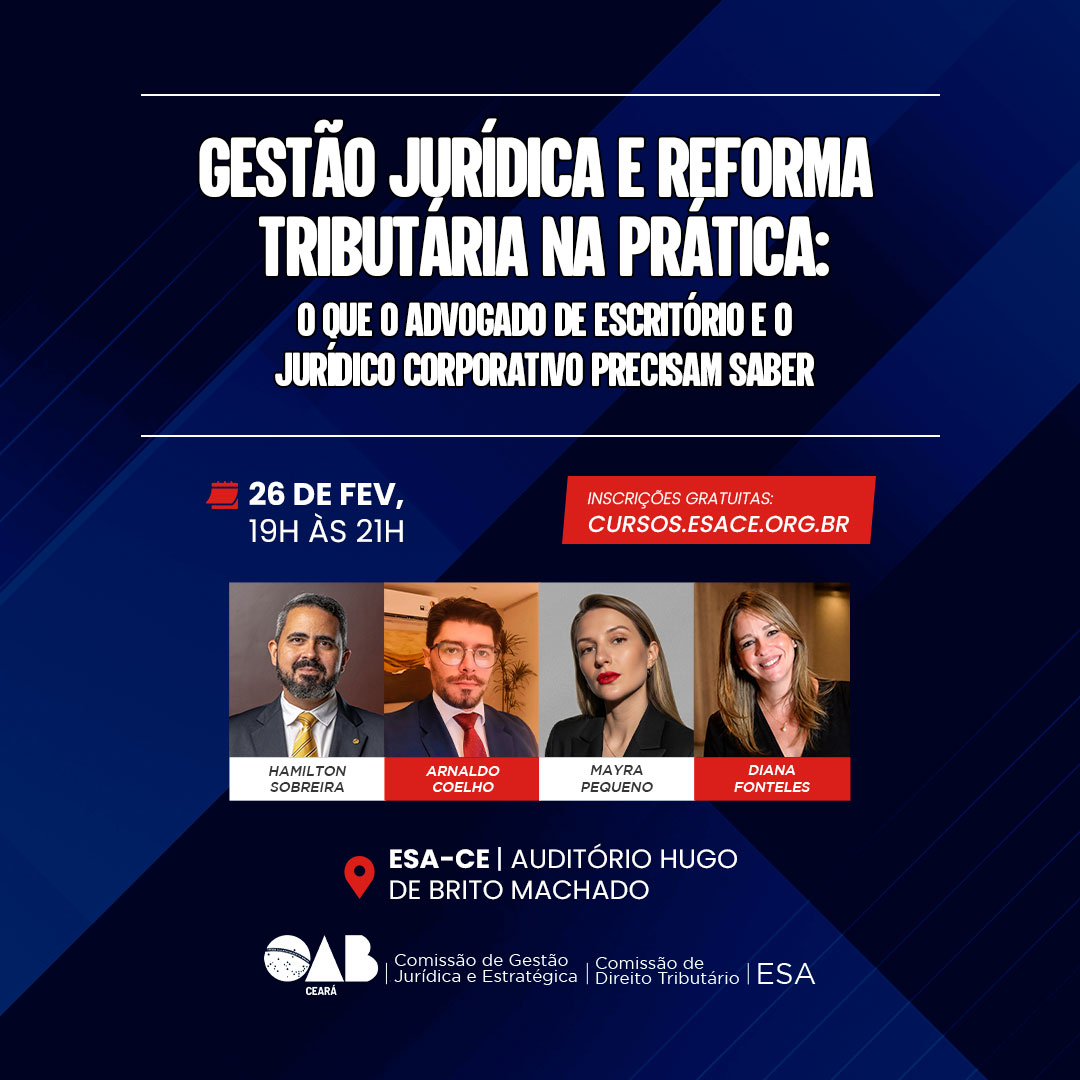 Realização: Comissão de Gestão Jurídica e Estratégica e Comissão de Direito Tributário da OAB-CE | ESA-CE