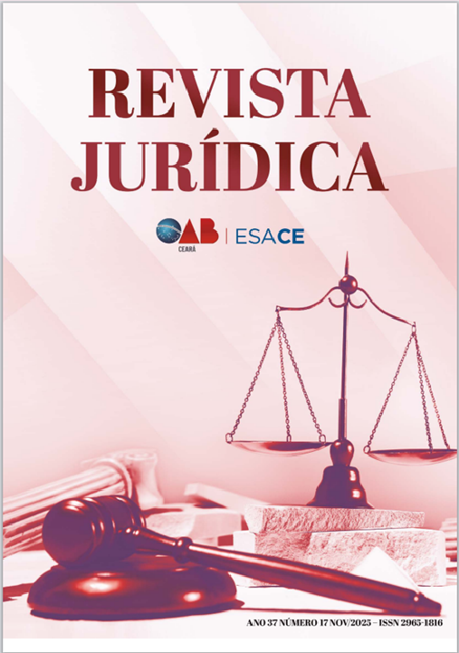 A Revista Jurídica da OAB/ESA – CE teve sua primeira edição impressa publicada em 1971, pela Ordem dos Advogados do Estado do Ceará (OAB-CE), em parceria com a Fundação Escola Superior de Advocacia do Estado do Ceará (FESAC) e, em 2023, estreia sua primeira edição on-line, como a sinergia da Escola Superior de Advocacia do Ceará (ESA-CE). Trata-se de uma das iniciativas mais fecundas do planejamento estratégico da Escola Superior da Advocacia do Ceará (ESA-CE) para a gestão 2022-2024, resgatando um importante instrumento de difusão do estudo jurídico cearense após um hiato de 20 anos desde a última publicação impressa. A Revista Jurídica da OAB/ESA – CE em sua edição inaugural na modalidade on-line com artigos de opinião de autores como advogadas, advogados e professores dos cursos de direito, por meio de relevantes discussões jurisprudenciais e doutrinárias nas diversas searas do Direito, com publicação semestral, em versão digital, que terá acesso livre pelo portal da ESA-CE (https://esace.org.br/).